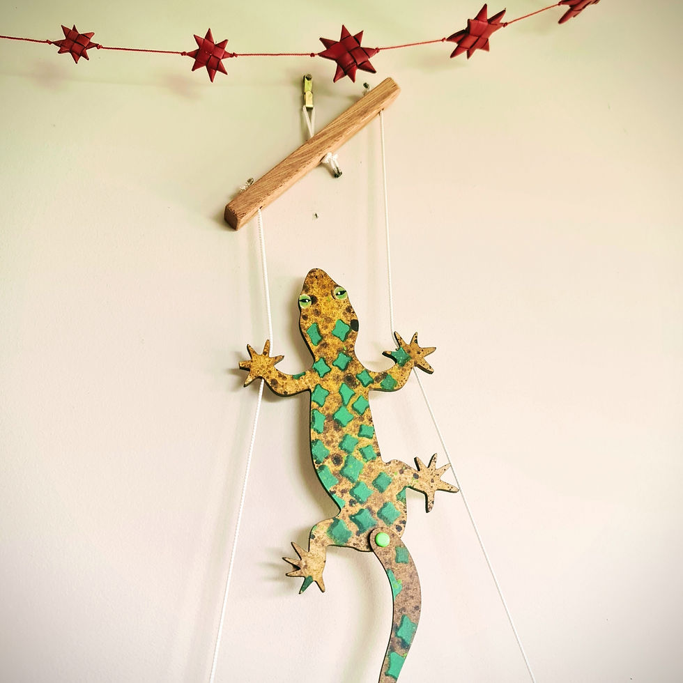 Pull the strings one at a time and watch these nimble little geckos scurry up the wall using nothing but friction and charm. Their swinging tails and curious eyes bring a touch of wild Aotearoa to this timeless toy."